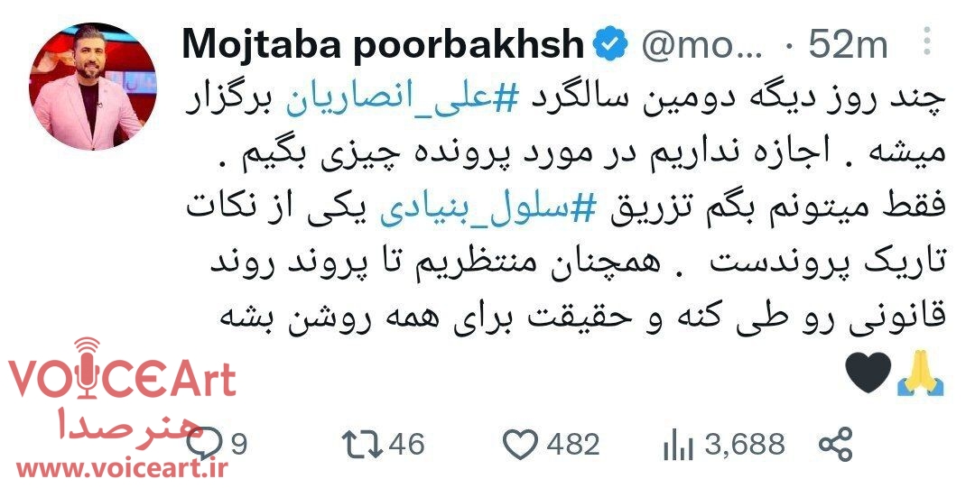 مجری سابق برنامه فوتبال یک شبکه ورزش در این خصوص نوشت: «چند روز دیگه دومین سالگرد علی انصاریان برگزار میشه. اجازه نداریم در مورد پرونده چیزی بگیم. فقط میتونم بگم تزریق سلول بنیادی یکی از نکات تاریک پروندست. همچنان منتظریم تا پروند روند قانونی رو طی کنه و حقیقت برای همه روشن بشه».