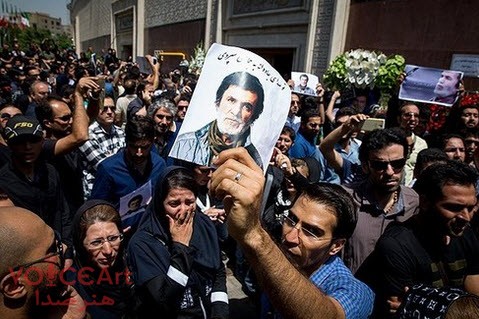 * افرادی که موفق به حضور در داخل مسجد نشده اند، تصاویر مرحوم محبیان و همچنین دست نوشته های از ترانه های وی را با خود همراه داشتند.