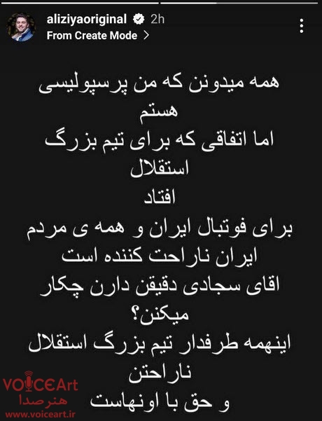 همه میدونن که من پرسپولیسی هستم اما اتفاقی که برای تیم بزرگ استقلال افتاد برای فوتبال ایران و همه مردم ایران ناراحت کننده است. آقای سجادی دقیقا دارن چیکار میکنن. این همه طرفدار تیم بزرگ استقلال ناراحتن و حق با آن ها است.